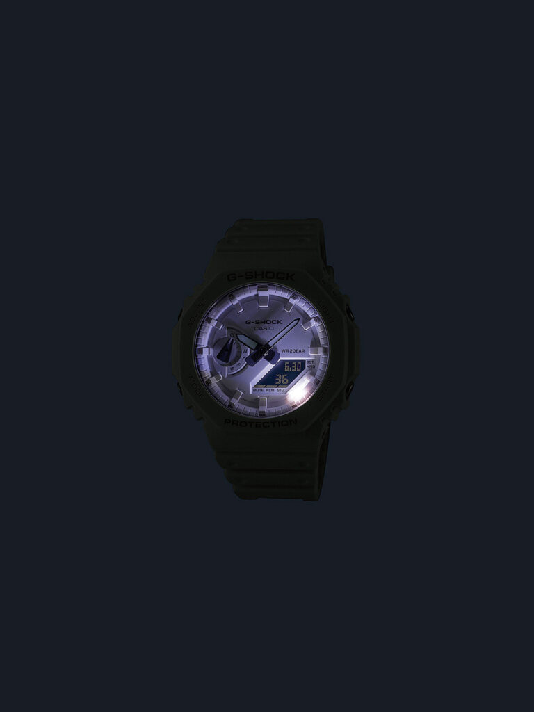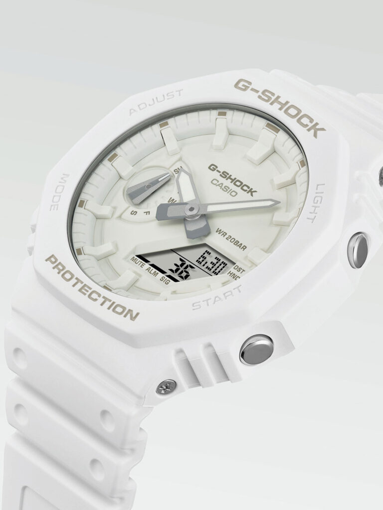 Tone-on-Tone G-SHOCK — kolekcija posvećena monohromatskoj estetici, do najsitnijih detalja. GA-2100 svoj kultni oblik sada u stilu ton-na-ton, dostupan u tri popularne boje — tirkiznoj, beloj i žutoj.