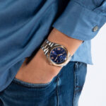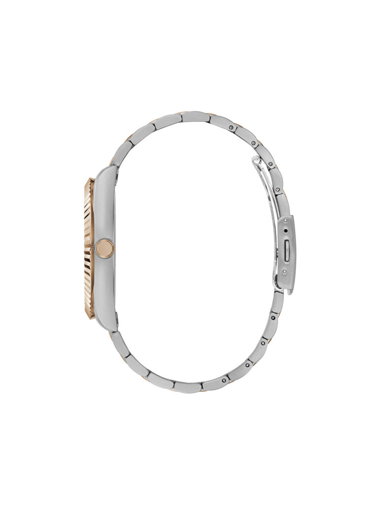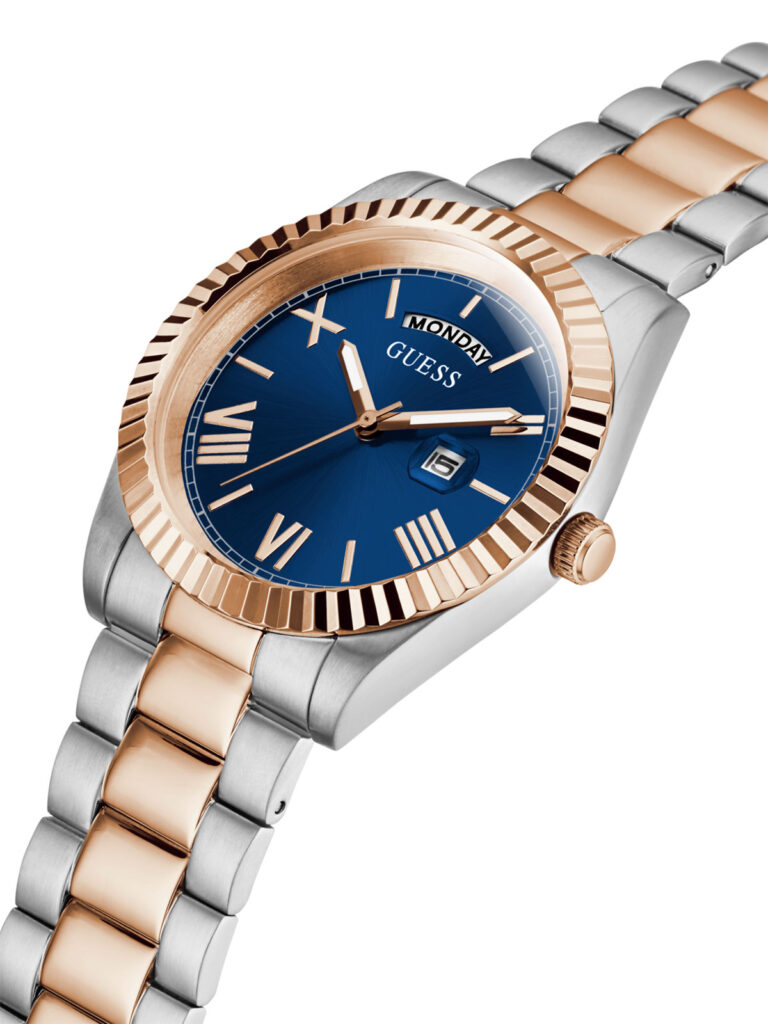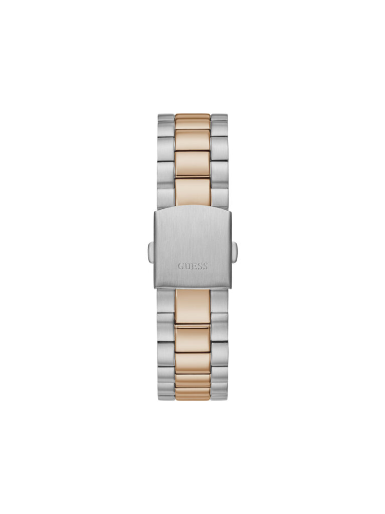 Klasičan model nikad ne izlazi iz mode. GW0265G12 Guess muški sat u dve boje čelika: boja srebra i boja roze zlata. Izrezbaren okvir kućišta integrisan je sa čeličnom narukvicom od 3 linka. Sat poseduje displej za dan na poziciji 12h i displej za datum na poziciji 3h.